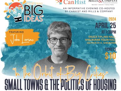 Hosted by CanHist & sponsored by multiple small-town organizations in Dufferin County, "Small Town Big Ideas" is a Speakers Series welcoming some of Canada's most provocative & innovative thinkers to Shelburne, Ontario.
